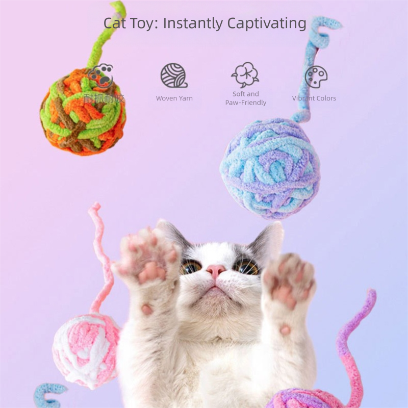 【 Soft Fur 】 The cat ball toy is made of soft and fluffy wool material, which can protect the cat's PAWS from any harm during long play.